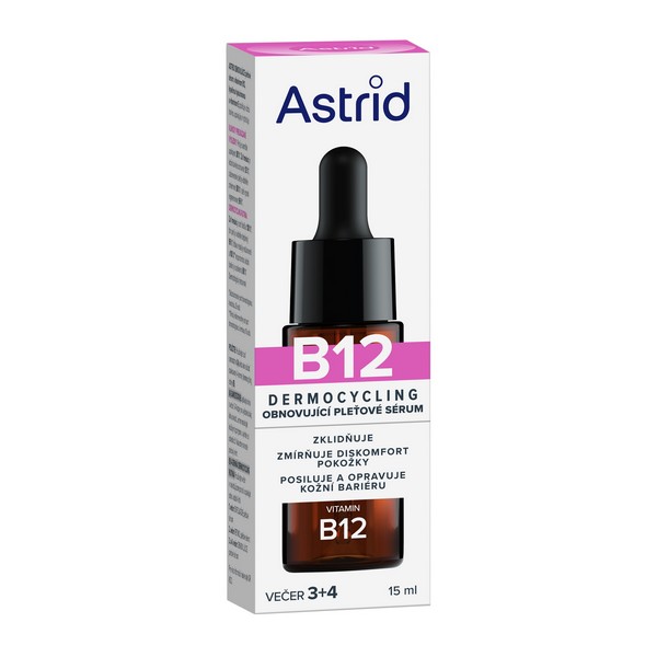 ASTRID obnovující pleťové sérum s vitamínem B12, kyselinou hyaluronovou a vitamínem E posiluje kožní bariéru, upokojuje a hydratuje.