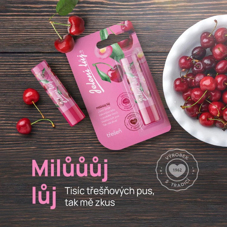 Pečujte o své rty a dodejte jim vše potřebné pro jejich přitažlivý vzhled. JELENÍ LŮJ v blistru Třešeň je doplněn o aktivní látku, kterou je vitamín E.